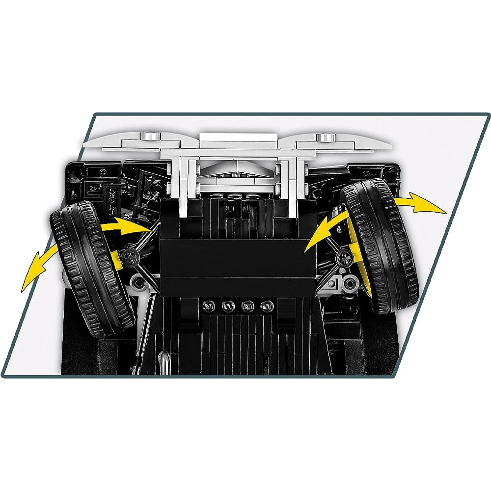 The assembly process is a rewarding challenge for any enthusiast. Moving away from specialized large molds, COBI utilizes clever building techniques to recreate the car's iconic curves. The journey begins with a detailed engine block, followed by a sturdy chassis that anchors the entire build. Mechanical highlights include the historically accurate suicide doors and a dual-hinged hood that reveals the intricate mechanical heart of the vehicle. The high clutch power ensures a premium, solid feel throughout the build.
