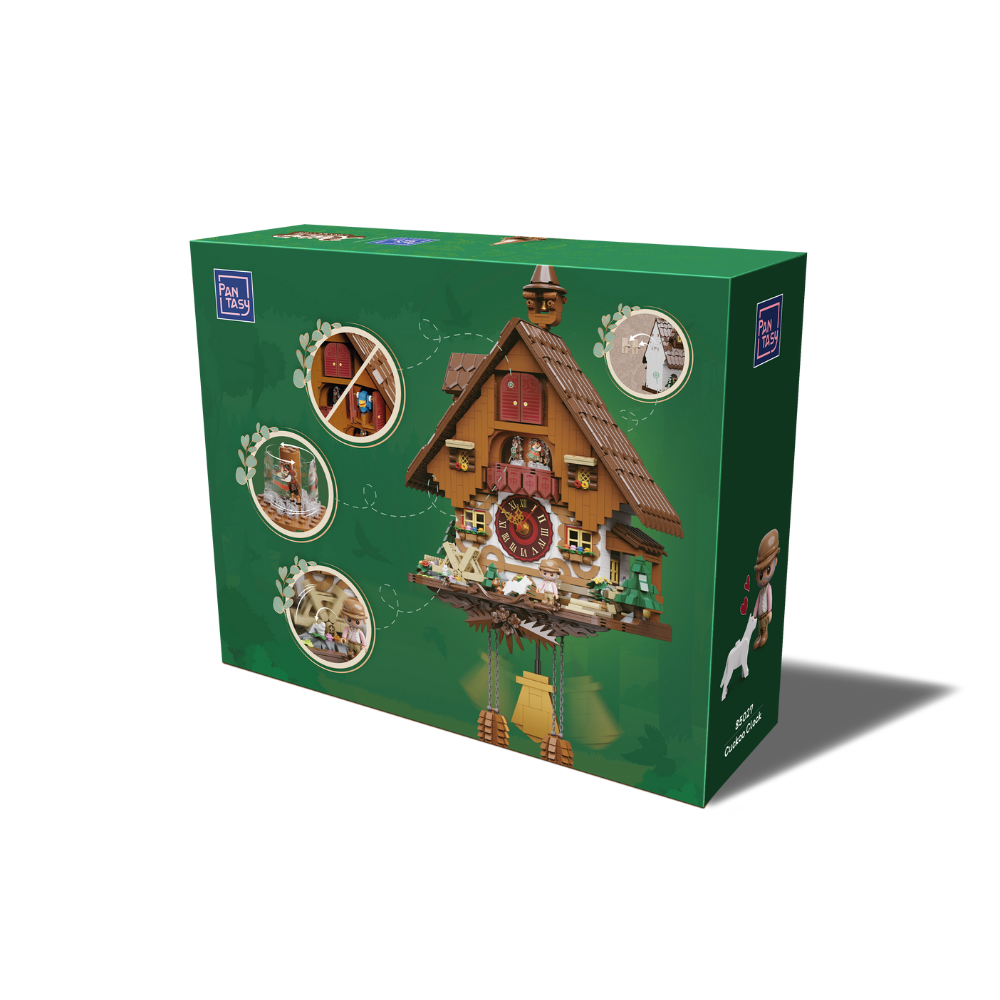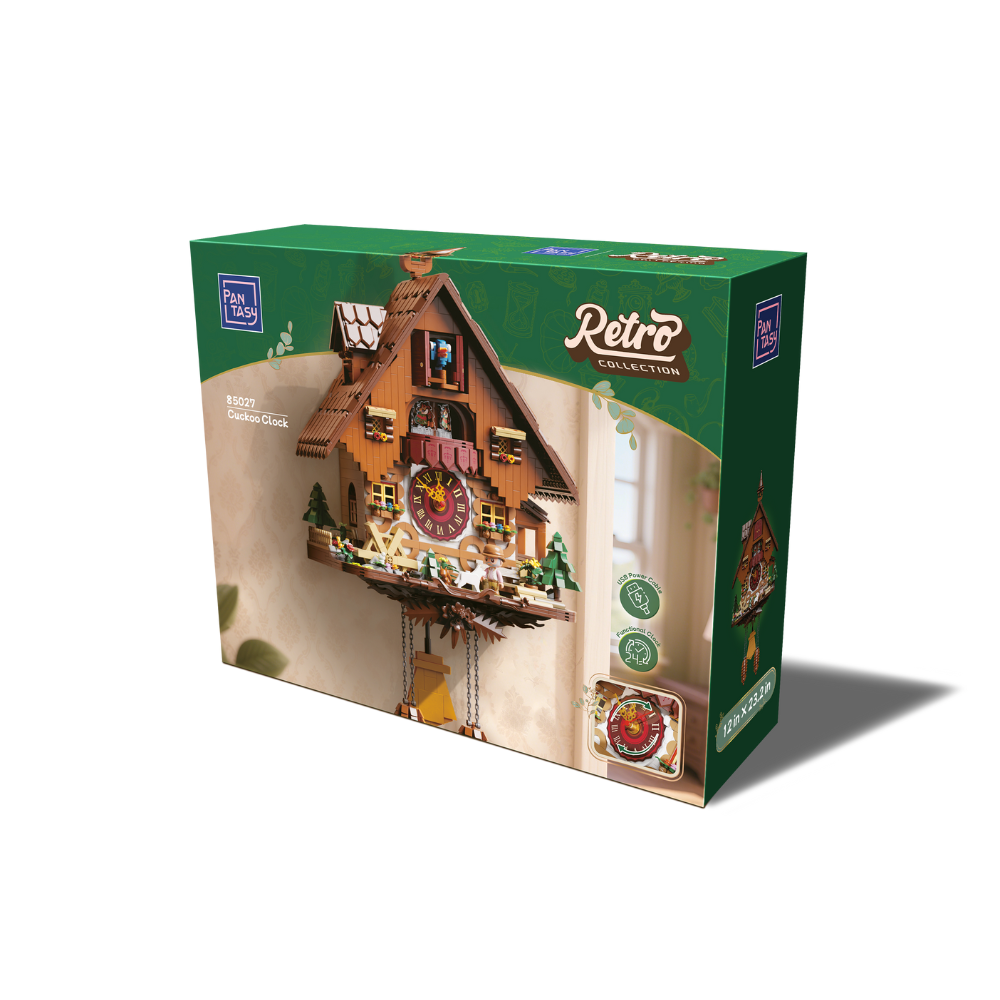Die „Retro Kuckucksuhr“ von Pantasy bringt den Zauber traditioneller Schwarzwälder Handwerkskunst in die Welt der Klemmbausteine. Mit ihrem detailreichen Chalet-Look, den Sprossenfenstern, Holzverzierungen und der markanten Dachkonstruktion verströmt sie sofort eine nostalgische Atmosphäre. Kleine Szenen mit einem Eichhörnchen, einem Vogel und einer beiliegenden Minifigur lassen die Uhr noch lebendiger wirken, während ein drehbares Wasserrad und das typische Kuckuckstürchen zusätzliche Bewegung ins Modell bringen. Dieses Set vereint dekorative Architektur mit verspielter Nostalgie und wird so zum emotionalen Highlight für Sammler und Baufans.