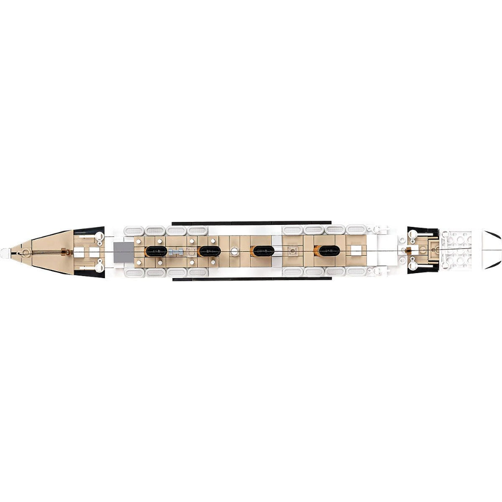 Das Modell im präzisen Maßstab 1:700 bietet ein Bauerlebnis, das durch Stabilität und haptische Qualität überzeugt. Mit 593 Bauteilen ist der Aufbau zwar zügig, aber keineswegs oberflächlich – kleine Details an Deck und der präzise geformte Rumpf fordern Ihre Fingerfertigkeit heraus. Besonders hervorzuheben ist die enorme Klemmkraft der Steine, die das Schiff zu einer massiven Einheit verschmelzen lässt. Ein besonderes Qualitätsmerkmal sind die bedruckten Seiten der Platten, welche die Kabinenfenster realistisch darstellen.