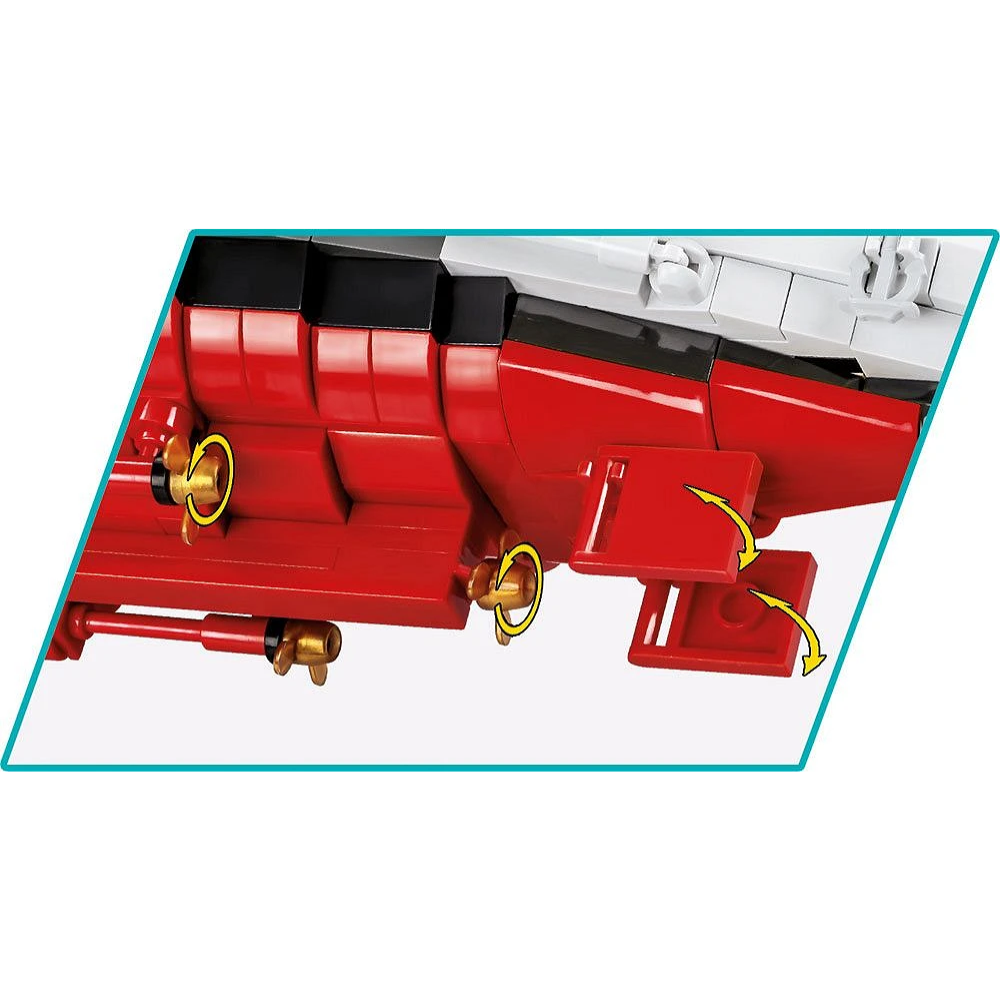 Mit über 2.800 Bausteinen ist die Tirpitz ein Bauprojekt für echte Enthusiasten. Die Konstruktion des massiven Rumpfes und die Umsetzung der komplexen Aufbauten fordern volle Konzentration. Besonderes Highlight: Ein abnehmbares Decksegment gewährt Einblick in den detailliert nachgebauten Maschinenraum mit seinen gewaltigen Turbinen – ein technisches Detail, das dieses Modell von reinen Hüllen-Modellen abhebt.