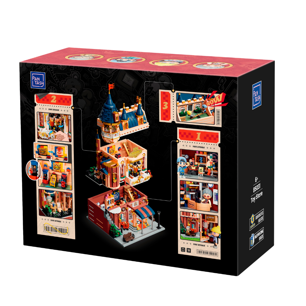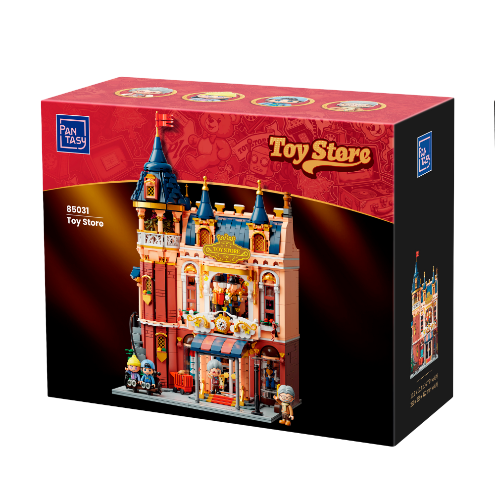 Mit einer Höhe von rund 42 cm wird der „Spielzeugladen“ zum eindrucksvollen Mittelpunkt jeder Straßenszene. Die Farbgestaltung aus cremefarbenen Wänden und roten Akzenten unterstreicht den festlichen Charakter, während die Figuren – von Kunden bis hin zum Ladenbesitzer – authentische Rollenspiele ermöglichen. Offiziell empfohlen ab 6 Jahren, richtet sich das Set vor allem an erwachsene Sammler, Architekturfreunde und kreative Baumeister, die Wert auf ausgefallene Details legen. Besonders in Kombination mit weiteren modularen Stadthäusern wie dem „Blütenbaum-Café“ (Pantasy 85032) entsteht eine stimmige, europäisch inspirierte Straßenszene, die sowohl als Ausstellungsstück wie auch als verspielte Bauwelt fasziniert.